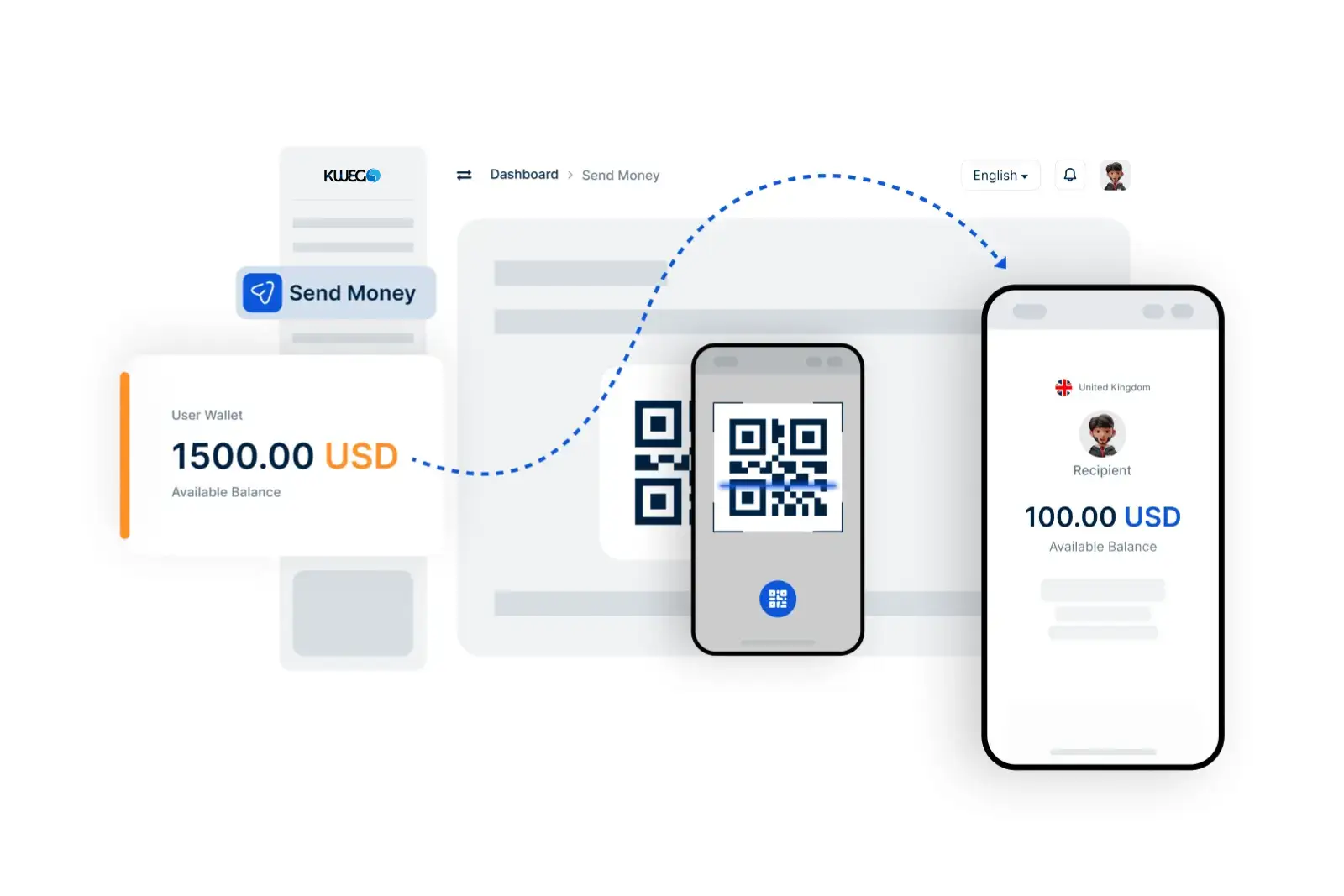 Simply enter the recipient’s KweGo ID, email, or phone number, or scan their QR code. Once you confirm the details, the funds will be sent instantly to their account.